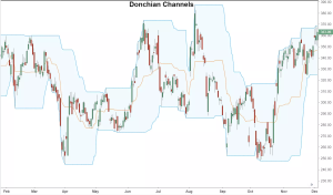 When using the Donchian Channel, traders typically pay attention to whether the price breaks through the upper or lower band, as such breakouts are often seen as important signals of trend initiation. For example, when the price breaks above the upper band, it may indicate the start of an uptrend, and traders may consider opening long positions. Conversely, if the price falls below the lower band, it may signal the beginning of a downtrend, and traders may consider selling or opening short positions.